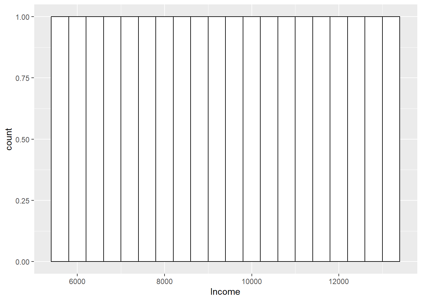Above, you’ll see the important descriptive statistics, including the standard deviation of 2366.432. Let’s plot the frequency distribution, and once we do so we will find that it is essentially uniform - every value occurs once and only once in the population.